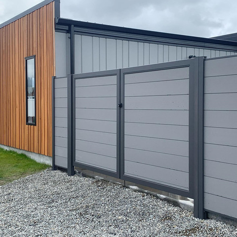 أسوار خارجية مقاومة للماء وذاتية الصنع مع سياج عالي الجودة ، أسوار بوابة wpc